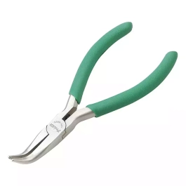 Pro'sKit 1PK-055S — длинногубцы с загнутым носиком (130 мм) предназначены для точных монтажных и сервисных работ в электронике, электротехнике и телекоммуникационном оборудовании. Загнутые губки позволяют удобно работать в труднодоступных местах, обеспечивая надежный захват мелких деталей, проводов и компонентов.