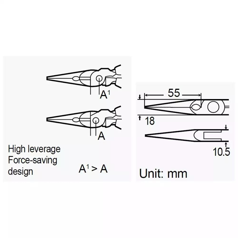 Инструмент изготовлен из прочной инструментальной стали и имеет чёрное оксидное покрытие (Black Oxide Finish), которое повышает устойчивость к коррозии и износу. Эргономичные рукоятки обеспечивают надёжный захват и комфорт при длительной работе, что делает Pro'sKit PM-909 удобным инструментом для инженеров, монтажников и сервисных специалистов.