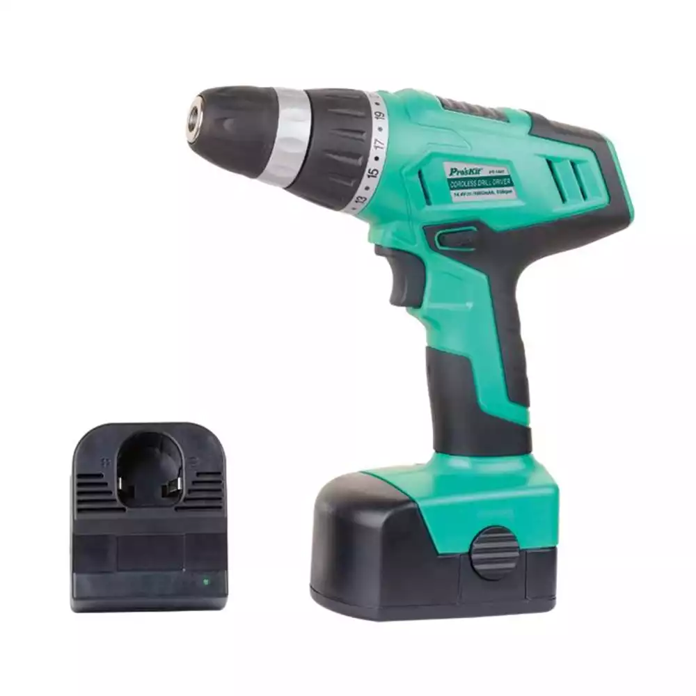 Pro'sKit PT-1441F — аккумуляторная дрель-шуруповерт 14.4 В, предназначенная для сверления и завинчивания крепежа при монтажных, ремонтных и сборочных работах.