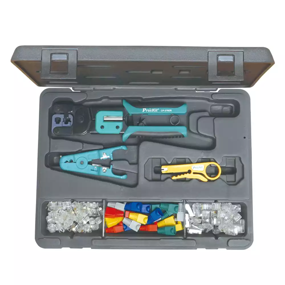 Pro'sKit 1PK-933 — универсальный набор для монтажа телекоммуникационных сетей RJ-45/11, предназначенный для обжима, зачистки и подготовки кабелей.