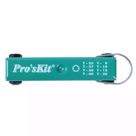 Pro'sKit 8PK-021L — набор складных ключей Torx с отверстием (Tamper-proof), предназначенный для работы с антивандальными крепежами. Компактная складная конструкция обеспечивает удобство хранения и использования.