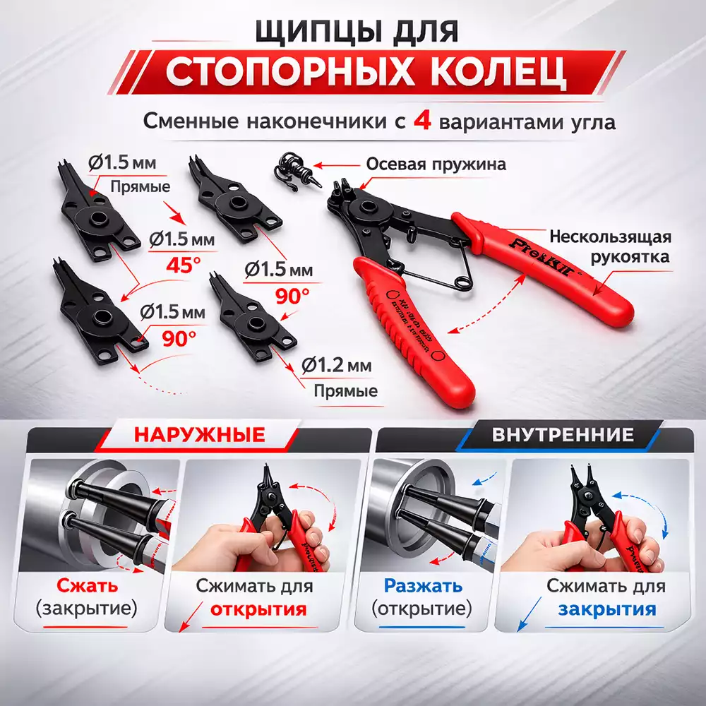 • Подходит для внутренних и внешних стопорных колец.