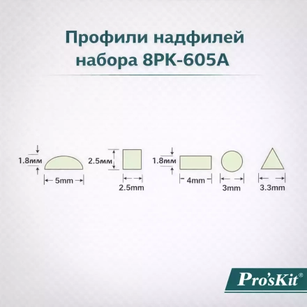 Pro'sKit 8PK-605A — набор надфилей из 5 штук, предназначенный для точной обработки деталей и работы в труднодоступных местах.