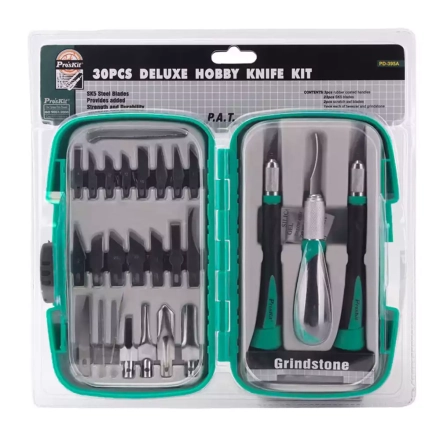 Pro'sKit PD-395A — набор ножей для хобби из 30 предметов, предназначенный для точной резки, гравировки и обработки различных материалов. Идеально подходит для моделирования, резьбы по дереву и творческих работ.
