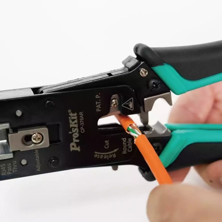 CP-376AR — профессиональный кримпер для проходных (Pass Through) коннекторов RJ45, предназначенный для работы с кабелями категорий Cat 7 / Cat 6 / Cat 5.