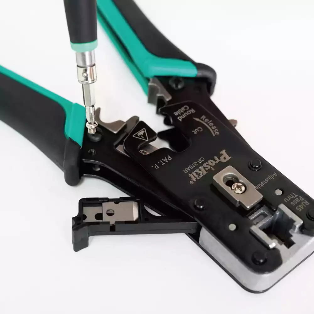 CP-376AR — профессиональный кримпер для проходных (Pass Through) коннекторов RJ45, предназначенный для работы с кабелями категорий Cat 7 / Cat 6 / Cat 5. Обеспечивает точный и надёжный обжим благодаря параллельному механизму и усовершенствованной храповой системе.