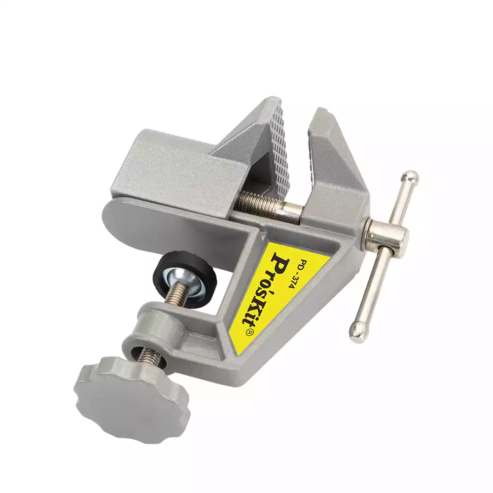 Pro'sKit PD-374 — компактные тиски для хобби и точных работ, предназначенные для надежной фиксации небольших деталей при обработке, пайке или сборке.