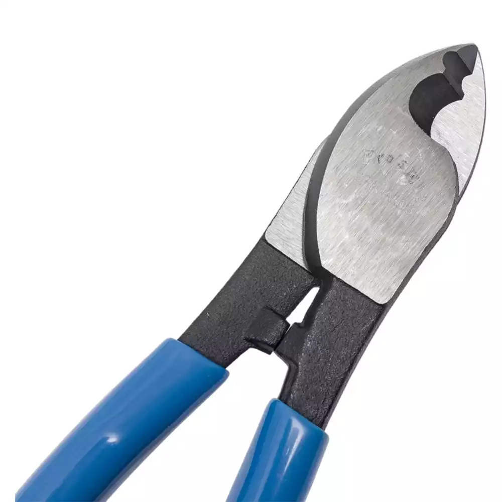 Инструмент изготовлен из закаленной инструментальной стали для повышенной прочности и длительного срока службы. Эргономичные нескользящие рукоятки обеспечивают комфорт и надежный контроль во время работы, что делает резак удобным для профессионального использования электриками и монтажниками.