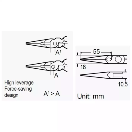 Инструмент изготовлен из прочной инструментальной стали и имеет чёрное оксидное покрытие (Black Oxide Finish), которое повышает устойчивость к коррозии и износу. Эргономичные рукоятки обеспечивают надёжный захват и комфорт при длительной работе, что делает Pro'sKit PM-909 удобным инструментом для инженеров, монтажников и сервисных специалистов.