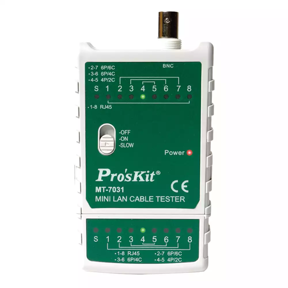 Тестер кабеля Pro'sKit MT-7031 - это универсальное устройство, предназначенное для обнаружения и проверки состояния кабелей. Он поддерживает различные типы кабелей, включая RJ45, RJ11/12/22, BNC, и может тестировать кабели длиной до 300 метров.