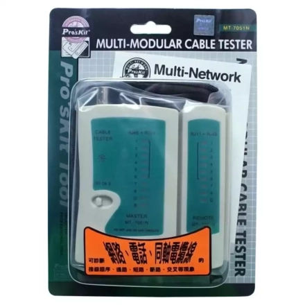 Тестер для многожильного кабеля MT-7051N от Pro'sKit — это универсальный инструмент, предназначенный для проверки различных типов кабелей, включая RJ45 TIA568A/B (AT&T 258A), 10 Base-T, Token Ring, RJ-11/RJ-12 USOC и коаксиальный кабель BNC.