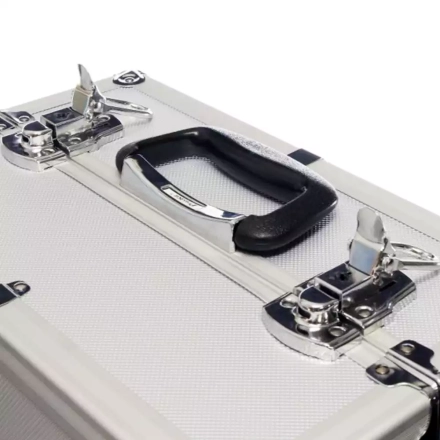 Прочный алюминиевый каркас кейса обеспечивает долговечность и защиту содержимого от внешних воздействий. Угловые скобки усиливают конструкцию и добавляют дополнительную защиту.