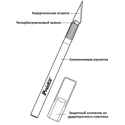 Pro'sKit 8PK-394A — это прецизионный нож, предназначенный для точных работ по резке различных материалов, включая пластик, бумагу, пленку и тонкие изоляционные покрытия.