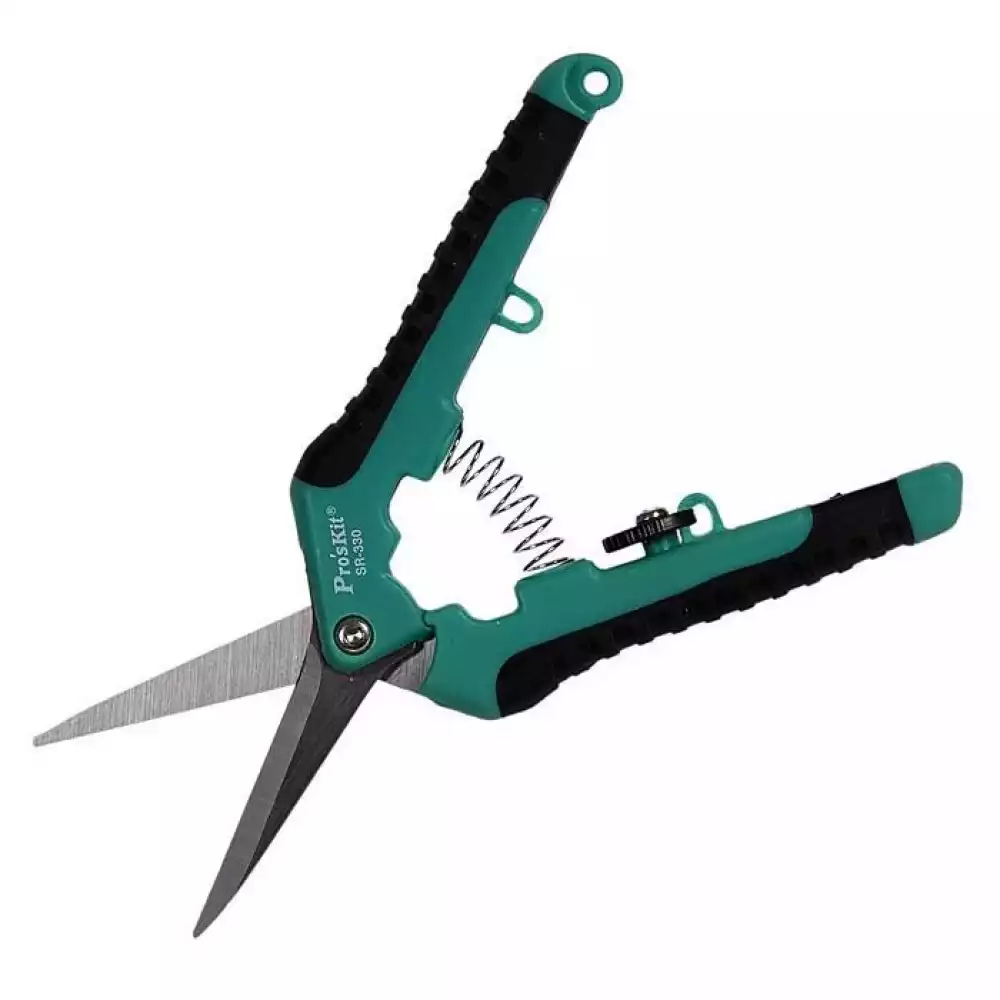 Pro'sKit SR-330 — это универсальные ножницы длиной 165 мм, предназначенные для резки различных материалов, включая бумагу, пластик, картон, кабельную изоляцию и тонкие провода.