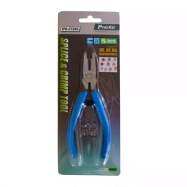 Пресс клещи 1PK-CT006 от Pro'sKit представляет собой универсальный кримпер, который используется для сращивания и обжима специальных наконечников. Этот инструмент обеспечивает надежное соединение благодаря точному и качественному обжиму. 1PK-CT006 особенно подходит для штекеров UR / UY / UG, которые часто используются в телекоммуникационных и сетевых работах.
