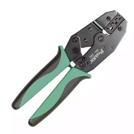 Пресс-клещи модели 6PK-230C от ProsKit – это инструмент, предназначенный для обжима неизолированных клемм сечением от 0.5 мм² до 6 мм². Оснащенные удобными двухкомпонентными рукоятками, они обеспечивают надежный хват и комфорт во время работы.