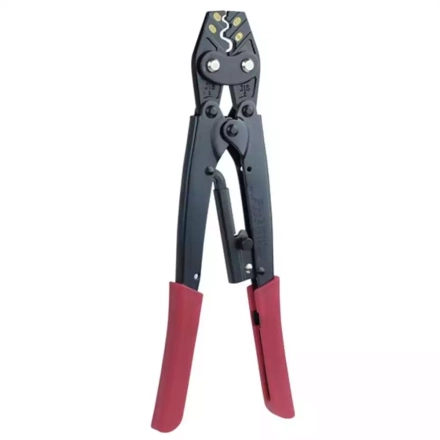 Пресс-клещи модели 8PK-CT016 от Pro'sKit – это инструмент для обжима кольцевых и вилочных неизолированных наконечников, который обладает трещоточным механизмом для обеспечения равномерного и надежного обжима. Инструмент предназначен для профессионального использования, позволяя работать с сечением кольцевых и вилочных неизолированных наконечников от 4 до 25 мм².