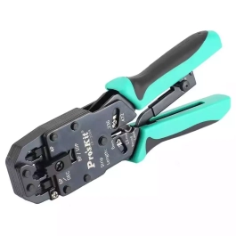 Пресс-клещи CP-200R от Pro'sKit представляют собой профессиональный инструмент для обжима витой пары. Этот инструмент идеально подходит как для индивидуальных, так и для серийных работ благодаря своей легкости и удобству использования. Разъемы: 10P10C, AMP 8P8C/RJ45, 6P6C/RJ12, 6P4C/ RJ11, 4P4C и 4P2C/ RJ22, и RJ11/6P6C DEC-Off