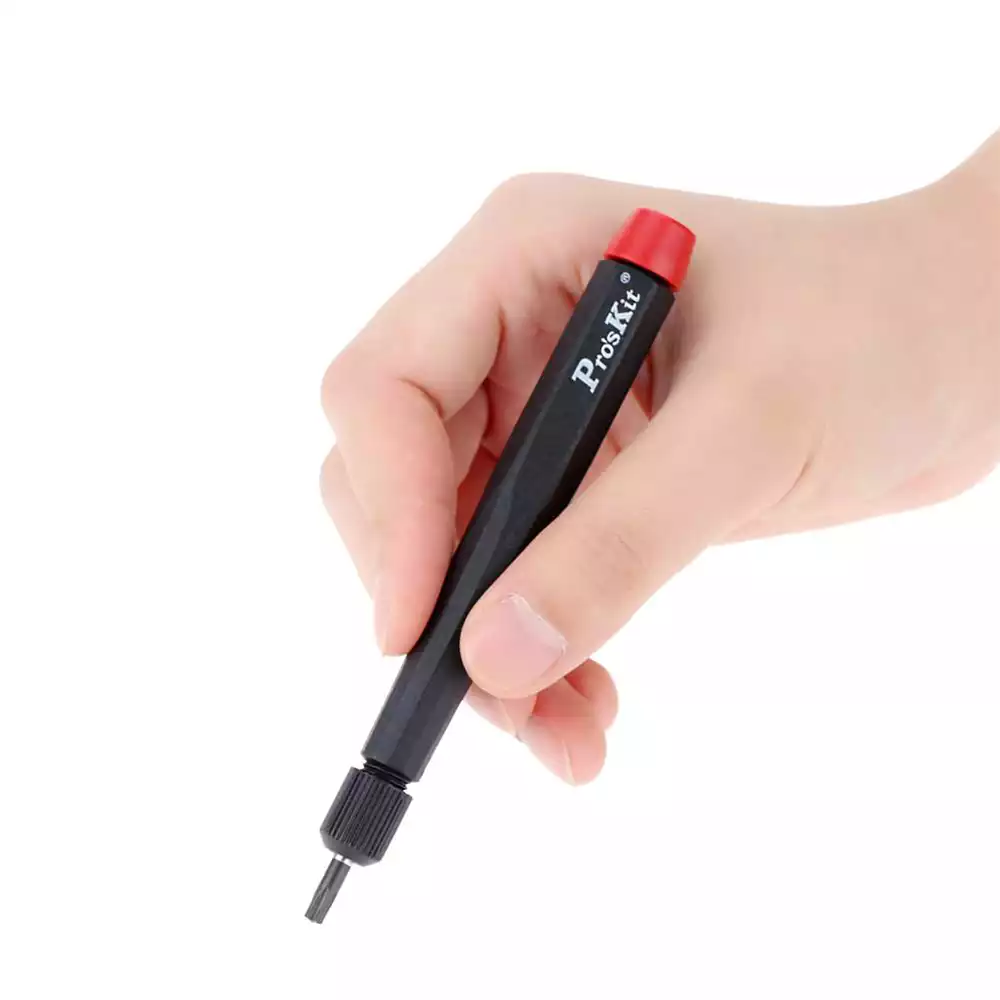 Набор отверток ProsKit 1PK-806 представляет собой высококачественный инструмент для точных работ, который включает в себя 7 двусторонних сменных бит различных типов. Биты изготовлены из хром-молибден-ванадиевой стали AISI 8660 с сатинированным покрытием, что обеспечивает их долговечность и надежность.