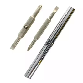 • Удлинитель с внутренним шестигранником + 2 биты с прямым и крестовым шлицем