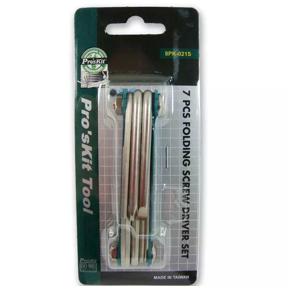 Набор Pro'sKit 8PK-021S включает в себя прямую и крестовую отвертки, а так же 5 шестигранных ключей, которые идеально подходят для различных задач, связанных с точной механикой. Наконечники изготовлены из высококачественной хром-ванадиевой стали SAE 6150, что обеспечивает их долговечность и надежность в работе.