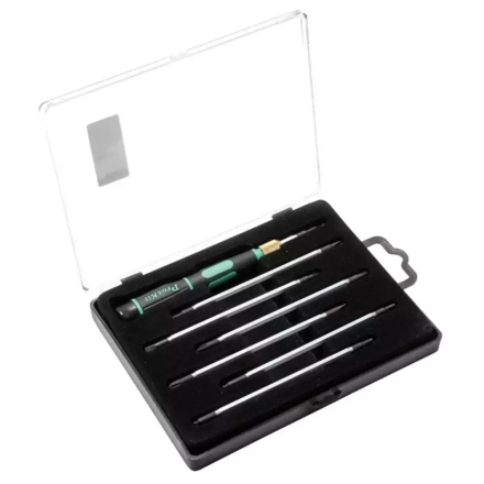 Набор отверток ProsKit SD-081B представляет собой высококачественный инструмент для точных работ, который включает в себя 7 двусторонних сменных бит различных типов. Биты изготовлены из хром-молибден-ванадиевой стали AISI 8660 с сатинированным покрытием, что обеспечивает их долговечность и надежность.
