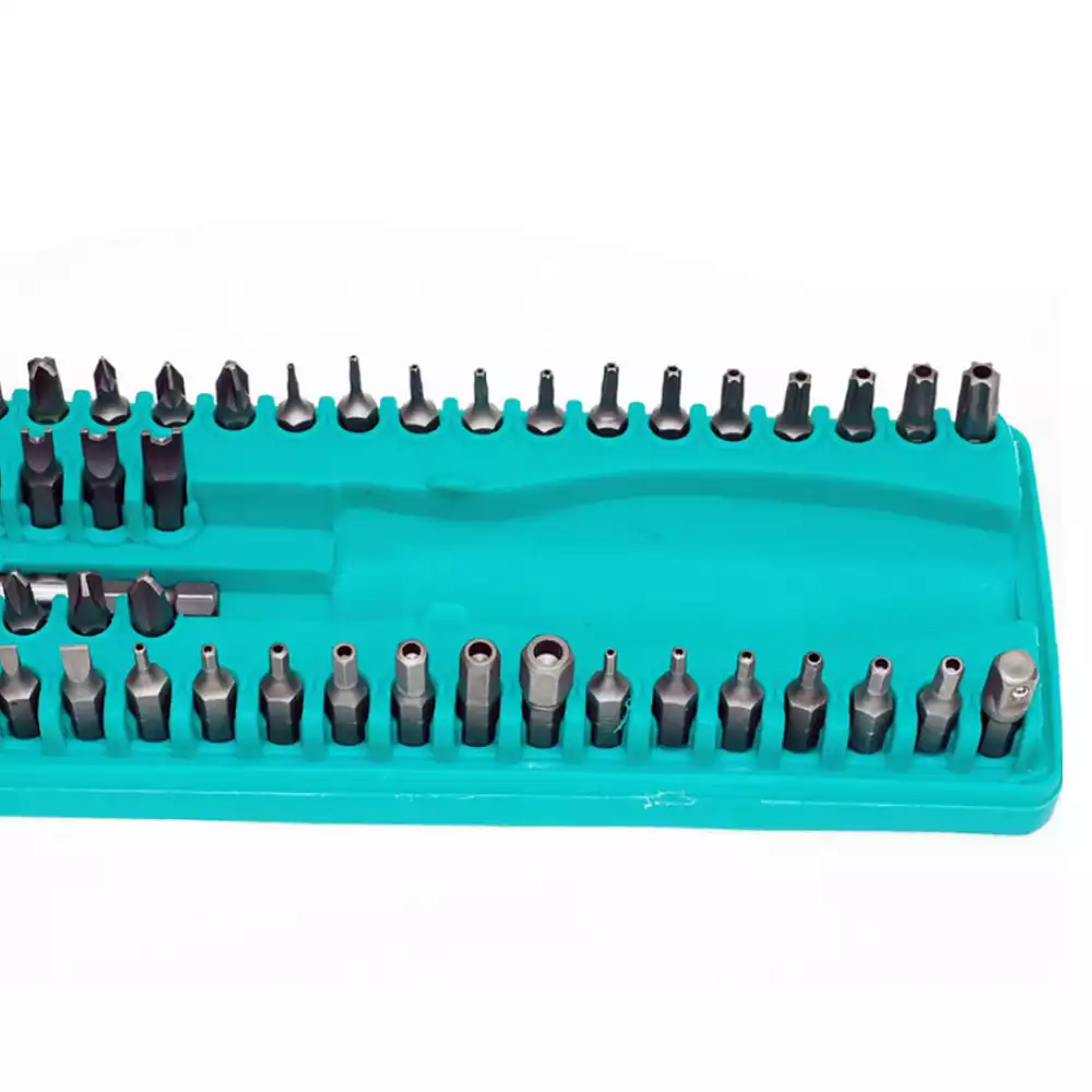 Магнитный держатель насадок облегчает процесс работы, позволяя быстро и удобно менять биты в зависимости от задачи. Трещоточный механизм отвертки увеличивает эффективность работы, минимизируя усилия, необходимые для закручивания или откручивания крепежа.