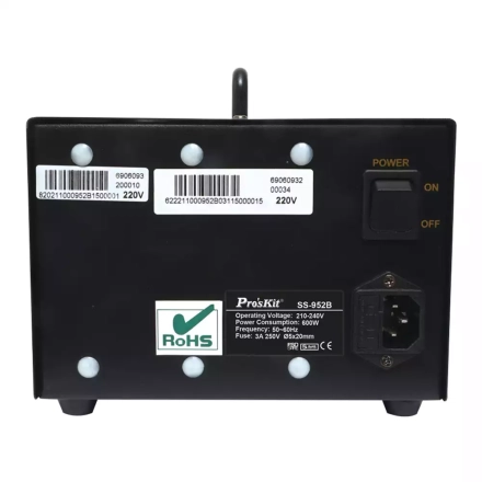 Встроенный микропроцессор управляет процессом нагрева, поддерживая необходимую температуру с высокой точностью. Также станция оборудована функцией автоматического охлаждения и уникальным режимом сна с таймером, что способствует экономии энергии и продлению срока службы оборудования. Кроме того, модель SS-952B защищена от статического электричества, что является важным фактором при работе с чувствительной электроникой.