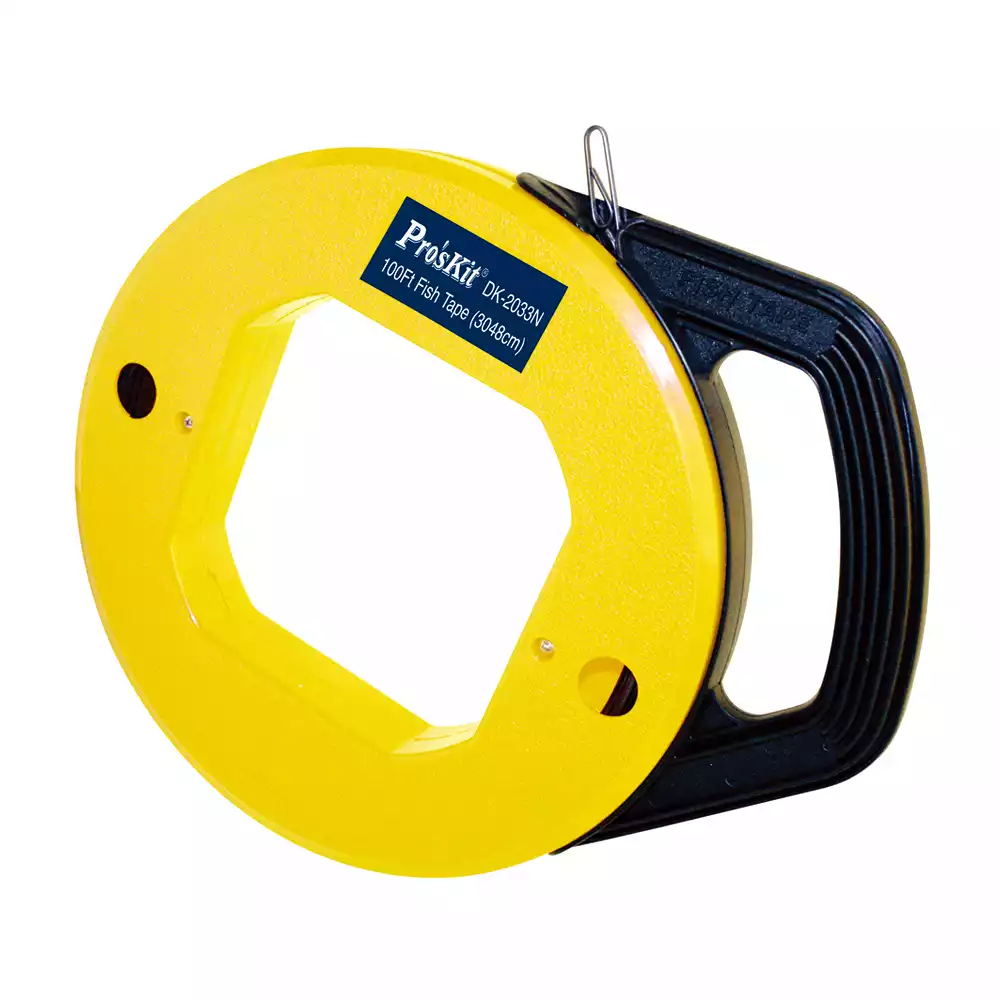 Pro'sKit DK-2033N — протяжка для кабеля длиной 100 ft (≈30,5 м), предназначенная для прокладки электрических проводов и кабелей через кабельные каналы, трубы и скрытые полости. Инструмент облегчает монтаж кабельных линий при электромонтажных и строительных работах.