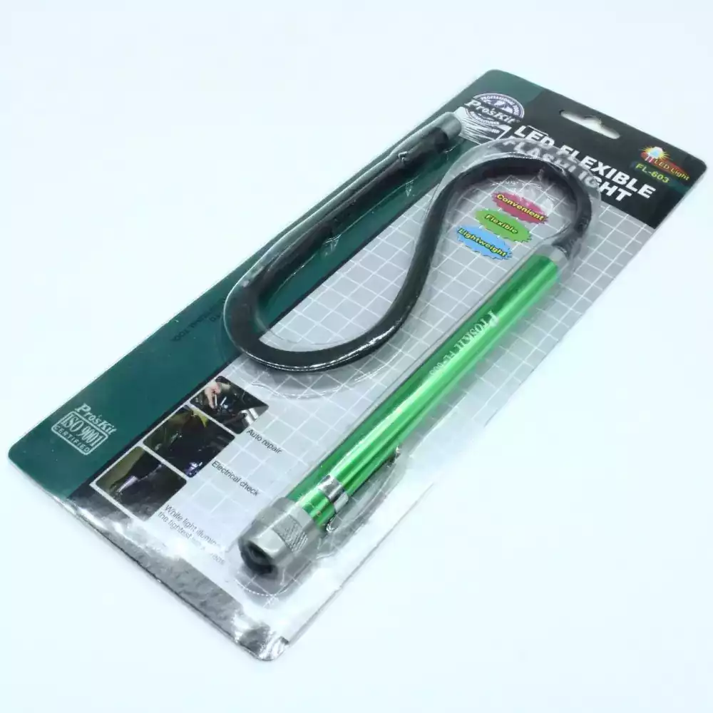 Pro'sKit FL-603 — светодиодный гибкий фонарик, предназначенный для освещения труднодоступных мест при ремонте, обслуживании оборудования и бытовых работах.