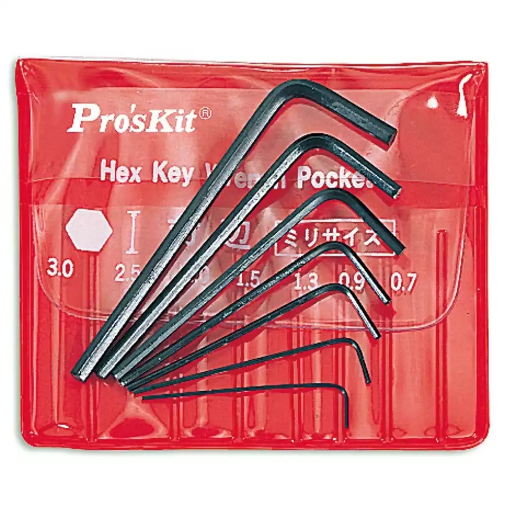 Набор миниатюрных шестигранных ключей 8PK-022 от Pro'sKit представляет собой удобный инструмент для работы с мелкими крепежными элементами. В комплект входят семь ключей с размерами от 0.7 до 3 мм, что делает его идеальным для точных и деликатных задач.