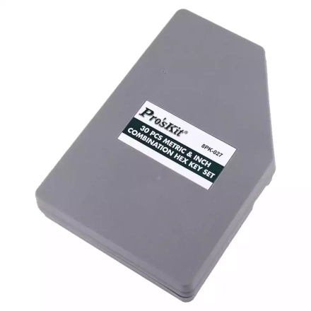 Набор шестигранных ключей 8PK-027 от Pro'sKit представляет собой комплект из 30 ключей, которые подойдут для работы с винтами, имеющими внутренний шестигранник. В наборе представлены ключи как метрических, так и дюймовых размеров, что делает его универсальным инструментом для различных задач.